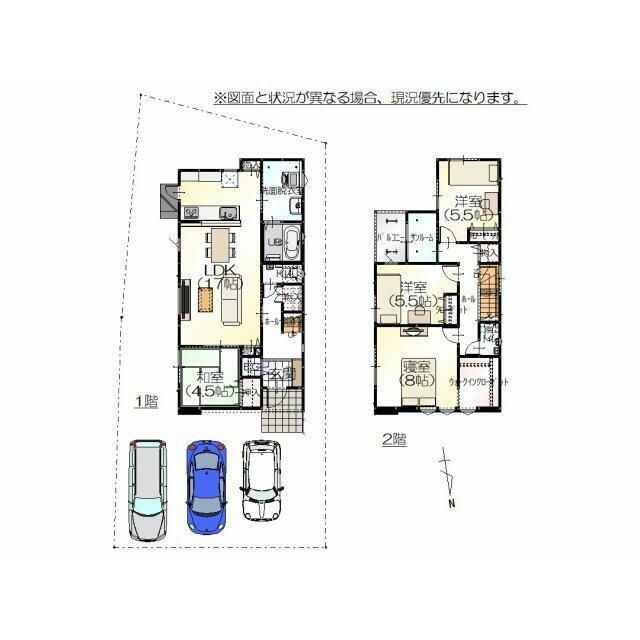 | 間取り(内訳) | 4LDK(LDK17、和4.5、洋8、5.5×2) | 建物面積 | 107.88㎡ |