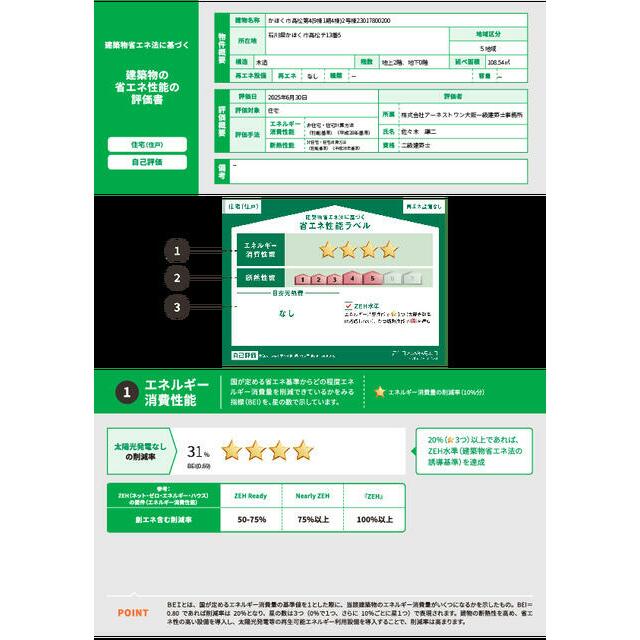 | エネルギー消費性能 | ★★★★(削減率30%達成) | 断熱性能 | 5段階/7段階中 |